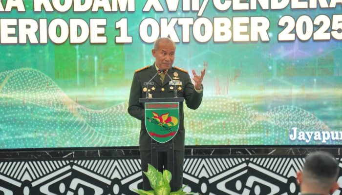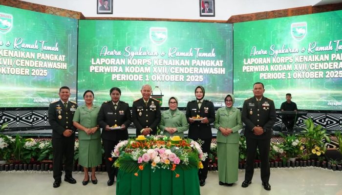 SuaraIntelijen.com.Jayapura,Sebanyak 2.192 prajurit dan Pegawai Negeri Sipil (PNS) Kodam XVII/Cenderawasih menerima kenaikan pangkat pada Rabu (1/10/2025). Upacara laporan korps kenaikan pangkat tersebut dipimpin langsung oleh Pangdam XVII/Cenderawasih Mayjen TNI Amrin Ibrahim, S.I.P., didampingi Ketua Persit Kartika Chandra Kirana Daerah XVII/Cenderawasih Ny. Surry Amrin Ibrahim, bertempat di Aula Tony Rompis, Makodam XVII/Cenderawasih, Jayapura.