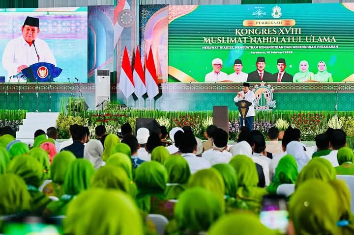 Sementara itu, dalam sambutannya, Presiden Prabowo menyampaikan apresiasi atas dedikasi dan kontribusi Muslimat NU dalam memajukan bangsa bersama pemerintah. Di samping itu, Kepala Negara juga menyampaikan penghargaan kepada NU yang turut membesarkan Muslimat NU.