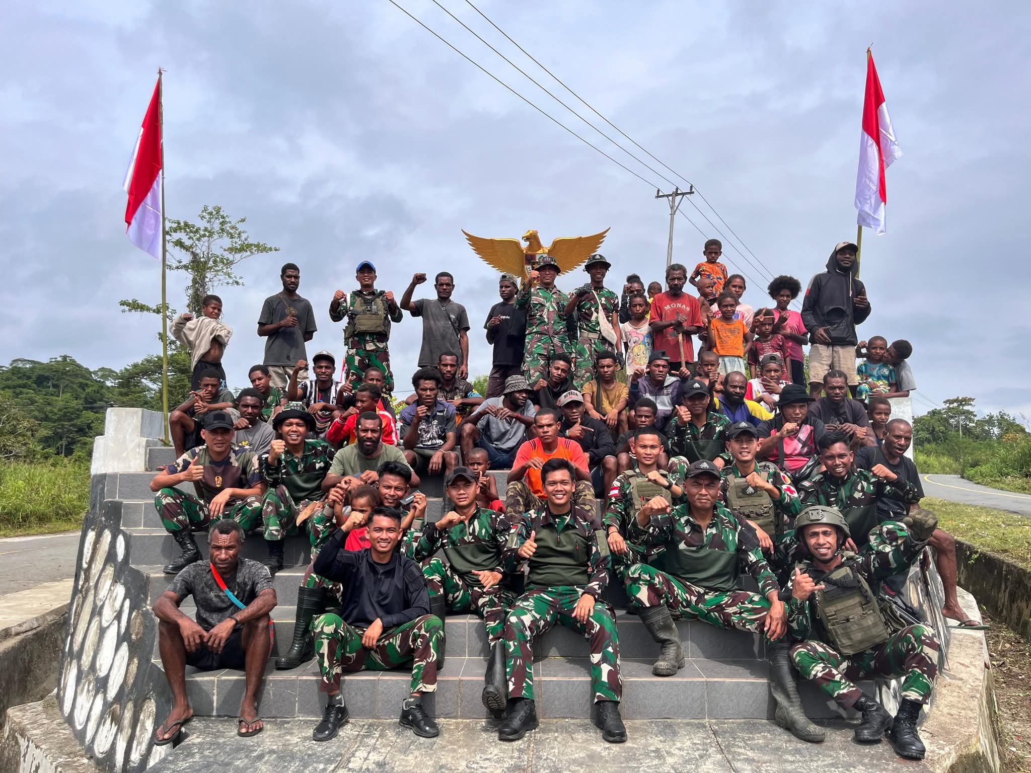 Garuda Tetap Berdiri Gagah di Ujung Timur Negeri, Satgas Yonif 512/QY Bersama Warga Waris Rawat Simbol Persatuan Bangsa
