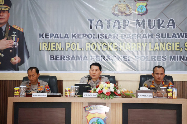 Mengawali kegiatan kunjungan kerja, Kapolda Sulut bertatap muka sekaligus memberikan arahan kepada personel Polres Minahasa dan jajaran, di aula Tansa Trisna Mapolres setempat. Kapolda Sulut juga menerima pemaparan laporan kesatuan oleh Kapolres Minahasa.