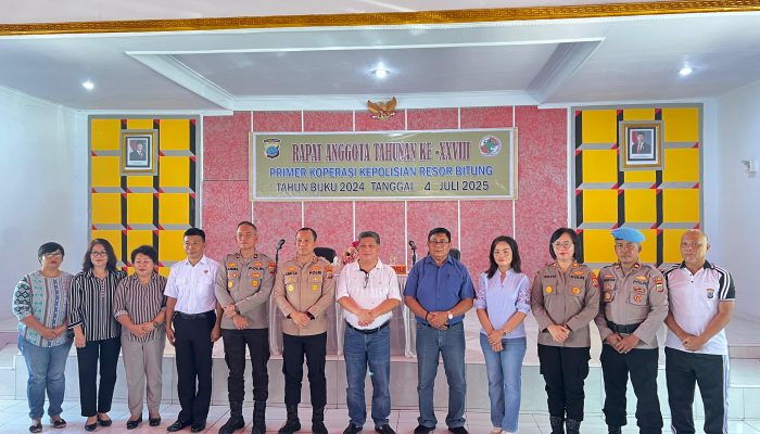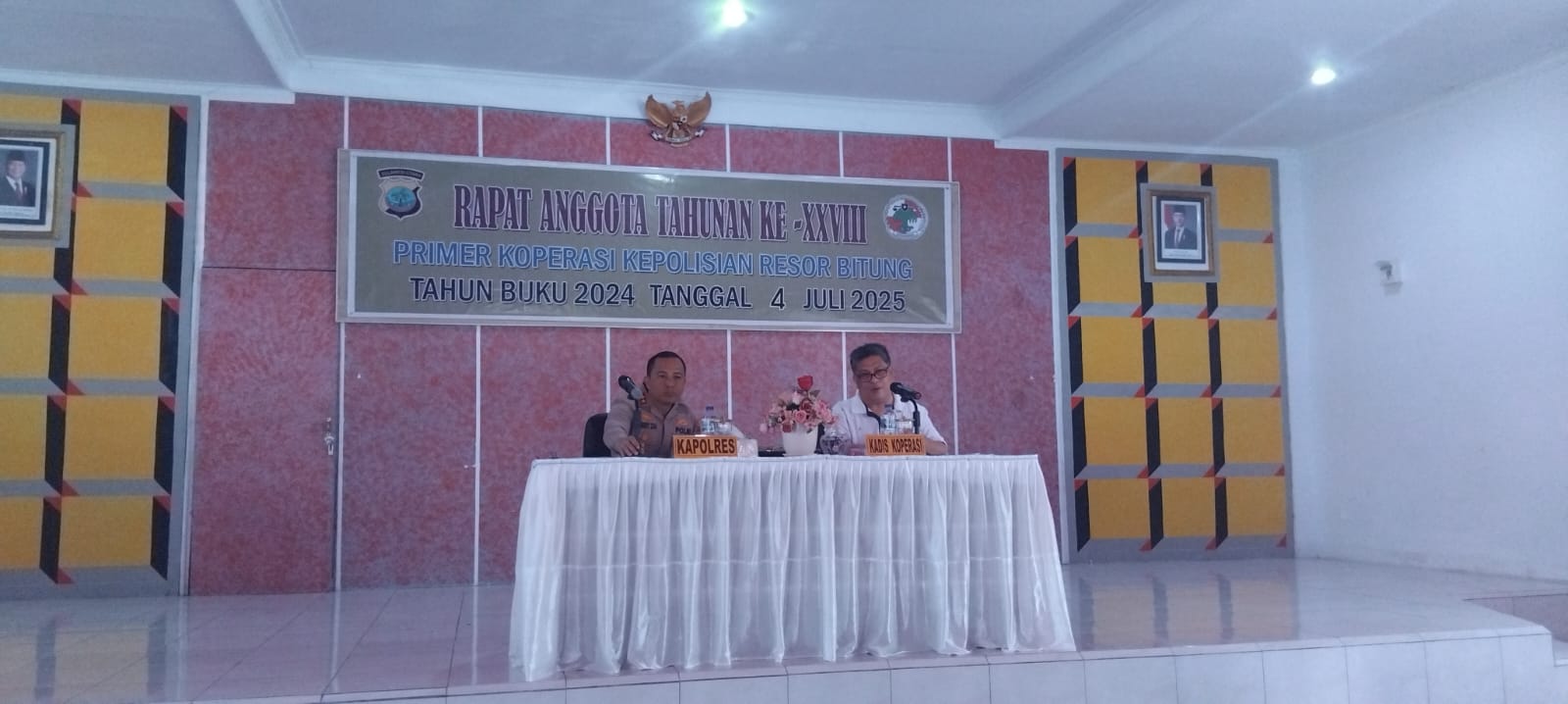 SuaraIntelijen.com.Bitung,Kapolres Bitung AKBP Albert Zai, SIK., MH., secara resmi membuka Rapat Anggota Tahunan (RAT) ke-XXVIII Primer Koperasi Polres Bitung, yang dilaksanakan di Aula Tri Brata Aspol Pinokalan, Jumat (4/7/2025).
