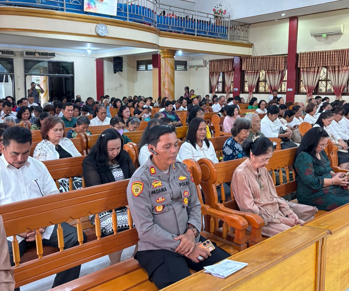 Kapolsek Maesa menyampaikan apresiasi atas peran gereja sebagai mitra strategis dalam membangun nilai-nilai spiritual, sosial, serta menjaga stabilitas dan keharmonisan di tengah masyarakat.