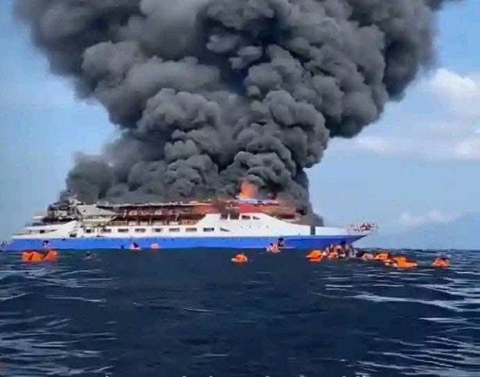 SuaraIntelijen.com.Minahasa Utara,Peristiwa mencekam terjadi di perairan sekitar Pulau Talise, Kabupaten Minahasa Utara Provinsi Sulawesi Utara, pada Minggu siang (20/7/2025), ketika Kapal Motor (KM) Barcelona V terbakar hebat saat berlayar dari Talaud menuju Manado. Kapal yang mengangkut puluhan penumpang itu mendadak mengeluarkan asap tebal dari ruang mesin, memicu kepanikan luar biasa di tengah laut.