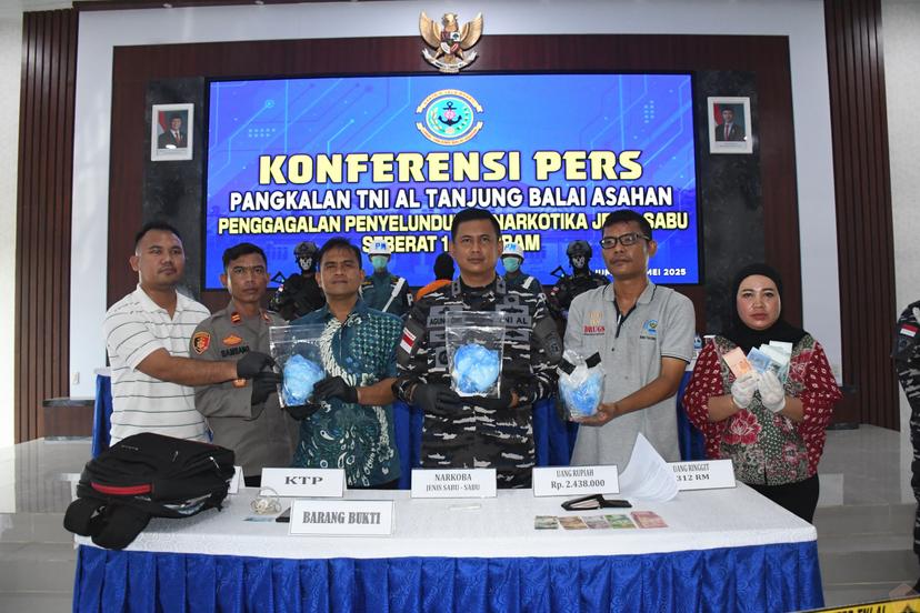 Suaraintelijen.com.Asahan,Sebagai bentuk kelanjutan pelaksanaan operasi Gakkumla oleh unsur Koarmada I, salah satunya penggagalan penyelundupan narkotika, Tim Fleet One Quick Response (F1QR) Pangkalan TNI Angkatan Laut Tanjung Balai Asahan (Lanal TBA) berhasil mengamankan 1 (satu) unit sampan kaluk pengangkut 1.506 gram Narkotika jenis sabu, sehingga diperkirakan menyelamatkan 7.530 jiwa generasi muda, dengan estimasi nominal senilai Rp. 2.259.000.000 (Dua milyar dua ratus lima puluh sembilan juta rupiah). Penyelundupan Narkotika ini digagalkan oleh TNI AL di perairan muara Sungai Asahan, Kamis (22/5/2025).