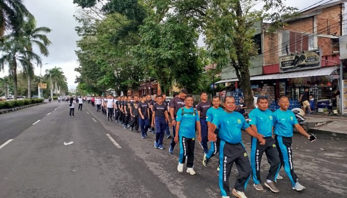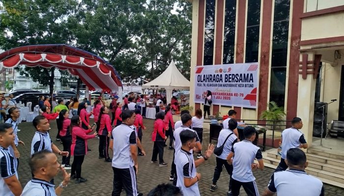 SuaraIntelijen.com.Bitung,Dalam rangka memperingati Hari Bhayangkara ke-79, Polres Bitung menggelar kegiatan olahraga bersama yang melibatkan unsur TNI, Kejaksaan, instansi pemerintah, serta masyarakat Kota Bitung. Kegiatan ini berlangsung meriah pada Rabu pagi (25/6/2025) mulai pukul 07.00 WITA, bertempat di depan Kantor Polsek Maesa, Kelurahan Bitung Tengah, Kecamatan Maesa.