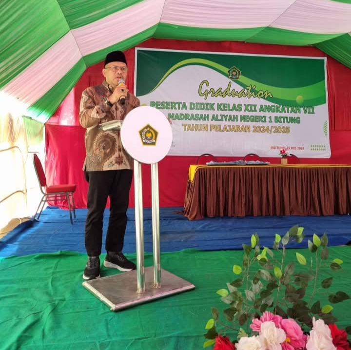 SuaraIntelijen.com.Bitung,Kepala Kantor Kementerian Agama Kota Bitung, H. Yahya W. Pasiak, didampingi Kasubag TU, H. Noval Besse, Kepala Seksi Pendidikan Islam, Kamran Besse, menghadiri Penamatan Siswa kelas XII (Dua Belas) Madrasah Aliyah Negeri (MAN) 1 Bitung pada Kamis (15/05/2025).