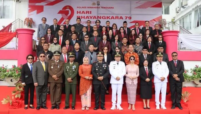 Upacara dipimpin langsung oleh Kapolres Minahasa Tenggara, AKBP Handoko Sanjaya, S.I.K., M.Han., dan dihadiri oleh jajaran Forkopimda, Bupati dan Wakil Bupati Mitra, para purnawirawan Polri, tokoh agama, tokoh masyarakat, serta elemen masyarakat lainnya.