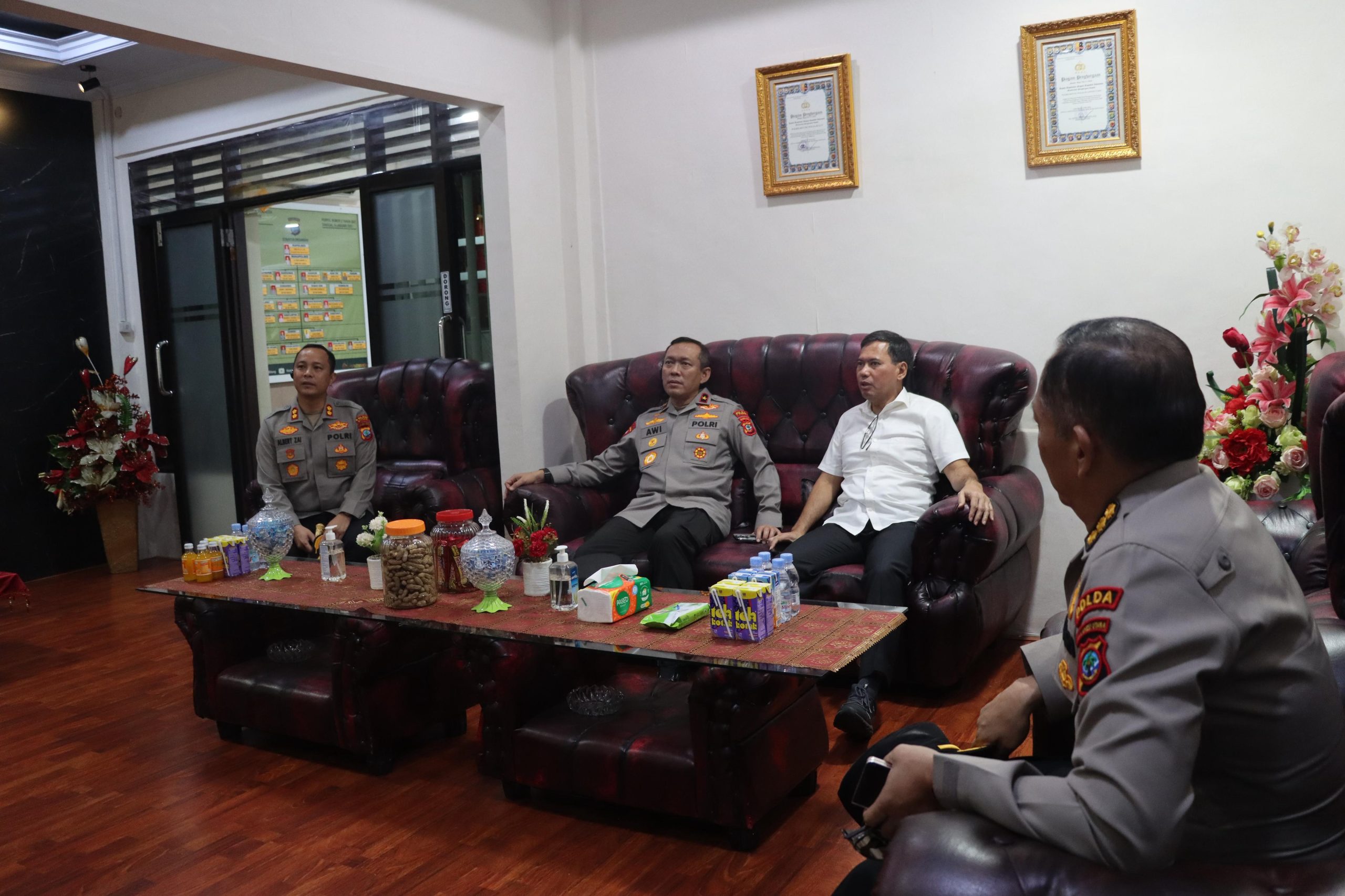 Kegiatan berlangsung dalam suasana penuh keakraban. Waka Polda Sulut menyempatkan diri berdialog bersama Kapolres di ruang kerja, serta memberikan sejumlah arahan strategis yang bertujuan memperkuat semangat dan integritas personel dalam melayani masyarakat.