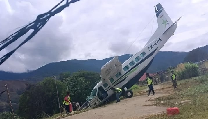 SuaraIntelijen.com.Kabupaten Lanny Jaya,Sebuah pesawat milik PT Smart Cakrawala Aviasi dengan registrasi C208B/PK-SNA mengalami insiden tergelincir saat mendarat di Bandara Tiom, Distrik Kurulu, Kabupaten Lanny Jaya, pada Sabtu (11/10/2025) sekitar pukul 09.40 WIT.