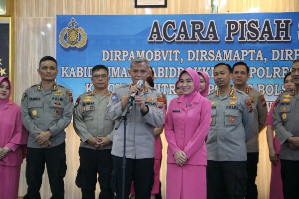 Kapolres Bolaang Mongondow Timur yang baru AKBP Golfried Hasiholan, SH, MSi menggantikan pejabat lama AKBP Sugeng Setyo Budhi, SIK, M.Tr.Opsla.