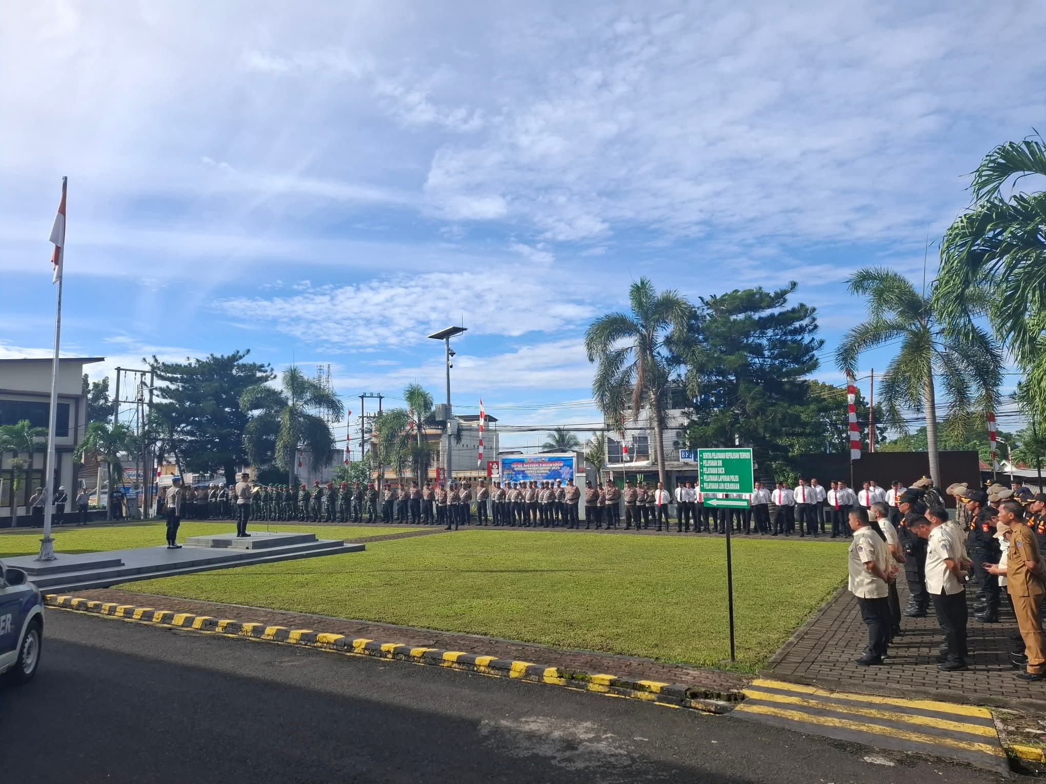Apel dipimpin langsung oleh Kapolres Bitung, AKBP Albert Zai, S.I.K., M.H., yang menyampaikan pentingnya sinergi lintas sektoral dalam mendukung kelancaran operasi yang akan berlangsung sejak tanggal 14 hingga 27 Juli 2025.