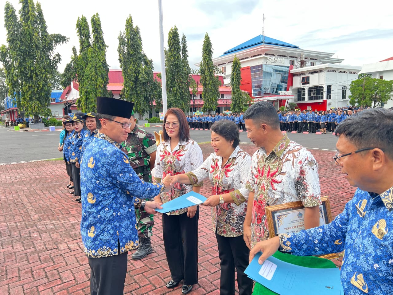 Penghargaan tersebut diserahkan oleh Asisten Administrasi Umum Setda Kota Bitung, Drs. K.W. Beni Lontoh, MA, yang mewakili Wali Kota Bitung, dalam Upacara Hari Koperasi yang berlangsung di Lapangan Upacara Kantor Wali Kota Bitung, Kamis (17/7/2025).