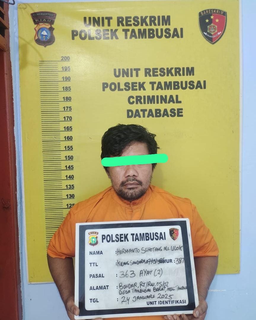 Kanit Reskrim Polsek Tambusai, Aipda Marta Kusuma, SH, berhasil mendapatkan informasi terkait keberadaan pelaku yang diketahui bernama Hermanto Sihotang alias Ulok (38). Pelaku ditangkap pada Kamis malam, 23 Januari 2025, di sebuah warung di Desa Ujungbatu Sosa, Kecamatan Sosa, Kabupaten Padang Lawas, Sumatera Utara.