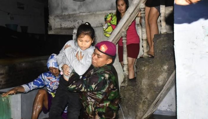 SuaraIntelijen.com.ManadoPrajurit Petarung Korps Marinir dari Yonmarhanlan VIII Bitung kembali menunjukkan dedikasi dan keberanian mereka dalam menjalankan tugas kemanusiaan. Pada Minggu dini hari (23/03/2025), prajurit Marinir membantu warga yang terjebak banjir di Kelurahan Ternate Tanjung, Kecamatan Singkil, Kota Manado. Aksi heroik ini merupakan wujud nyata pengabdian Korps Marinir dalam melaksanakan Operasi Militer Selain Perang (OMSP), khususnya dalam penanggulangan bencana alam.