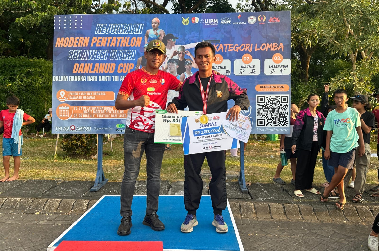 SuaraIntelijen.com.Manado,Prestasi gemilang kembali ditorehkan prajurit TNI AL dari Batalyon Marinir Pertahanan Pangkalan (Yonmarhanlan) VIII Bitung dalam ajang olahraga ketahanan fisik Modern Pentathlon Sulawesi Utara Danlanud Cup yang digelar di kawasan Megamas, Kecamatan Wenang, Kota Manado, Minggu (27/7/2025).