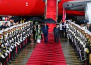Bersama Presiden Prabowo, Presiden Erdogan dan Ibu Emine Erdogan kemudian berjalan melewati barisan pasukan gordon yang berjumlah masing-masing 20 personel di sisi kanan dan kiri. Diiringi dentuman meriam sebanyak enam kali serta lantunan musik “Genderang Kemenangan,” suasana penyambutan kian terasa sakral dan penuh kebanggaan.