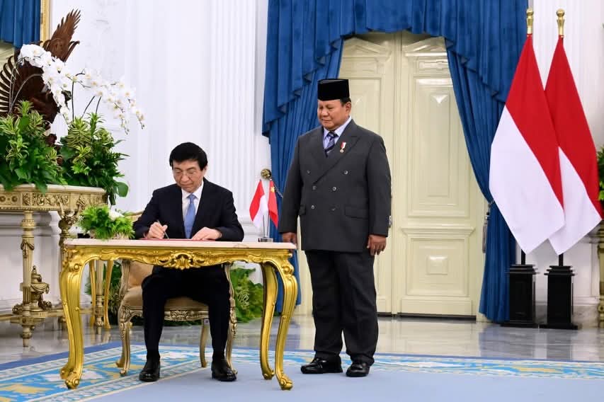 Ketua MPR RRT kemudian menuju beranda utama Istana Merdeka dan disambut langsung oleh Presiden Prabowo Subianto dengan jabat tangan hangat. Selanjutnya, kedua pemimpin menuju ruang kredensial untuk melakukan sesi foto bersama, yang dilanjutkan dengan penandatanganan buku tamu oleh Wang Huning sebagai simbol kehormatan dan persahabatan diplomatik kedua negara.