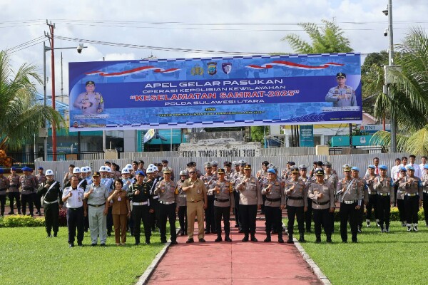 SuaraIntelijen.com.Manado,Polda Sulawesi Utara dan jajaran kembali menggelar Operasi Kepolisian Kewilayahan dengan sandi Keselamatan Samrat 2025. Kegiatan operasi diawali dengan Gelar Pasukan di halaman Presisi Polda Sulut, Senin (10/2/2025) pagi.