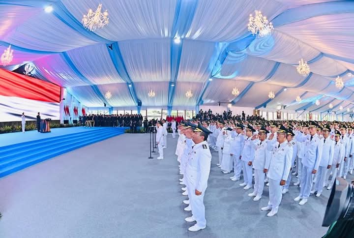 Pada kesempatan tersebut, Presiden Prabowo mengambil sumpah jabatan para kepala daerah yang dilantik.