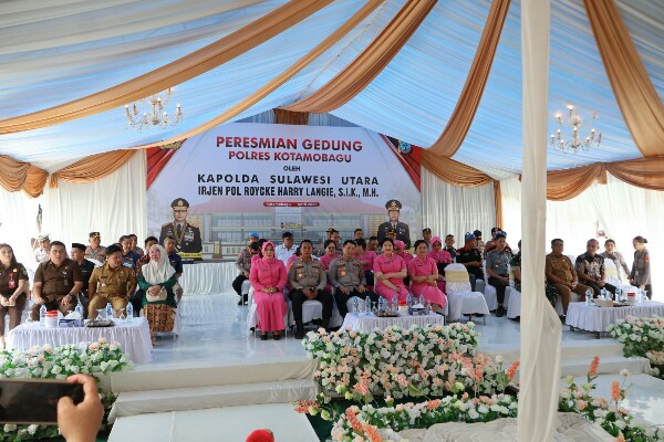 SuaraIntelijen.com.Kotamobagu,Kapolda Sulawesi Utara Irjen Pol Roycke Harry Langie meresmikan gedung Polres Kotamobagu yang baru, yang sebelumnya mengalami musibah kebakaran, Selasa (29/4/2025).