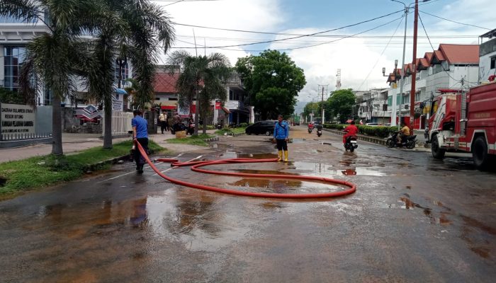 Sekretaris Damkar Kota Bitung, Nimbrot Polonto, bersama Kabid Sarpras, Kabid Pemadaman, serta Kabid Pencegahan turut hadir di lapangan untuk memastikan jalannya pembersihan.