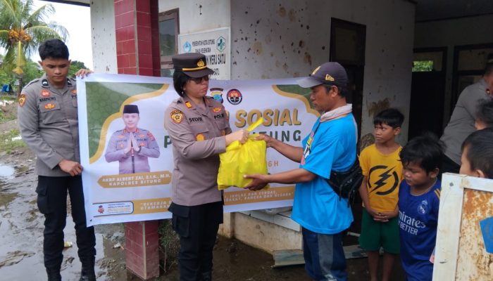 Pemberian Bantuan Sosial oleh Kapolres Bitung yang diwakili Wakapolres bersama PJU Polres Bitung diterima langsung oleh keluarga yang terdampak banjir tersebut.
