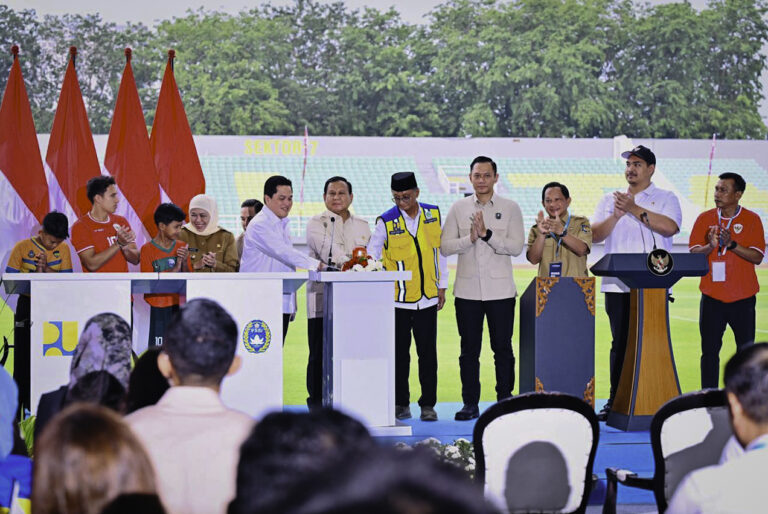 SuaraIntelijen.com.Jatim,Presiden Prabowo Subianto meresmikan renovasi dan pembangunan 17 stadion di Indonesia yang terpusat di Stadion Gelora Delta Sidoarjo, Kabupaten Sidoarjo, Provinsi Jawa Timur pada Senin, 17 Maret 2025. Peresmian ini dilakukan setelah sebelumnya sejumlah stadion direnovasi dan dibangun, serta dinyatakan memenuhi standar federasi sepak bola dunia (FIFA).